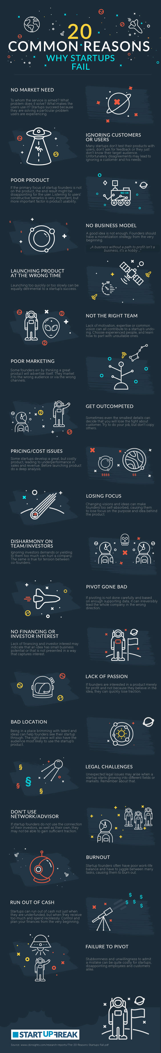 For every successful startup, there are many ventures that fail before they can properly take off. This infographic from Startup Freak covers a few common reasons many startups fail: