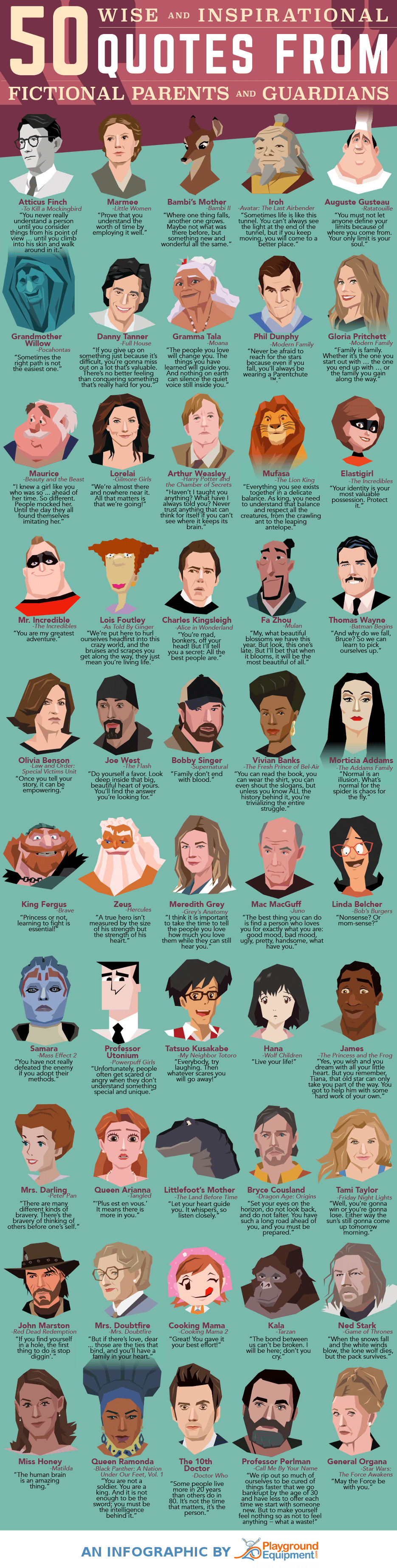 We all watch movies for entertainment but you can also learn valuable lessons from inspirational characters. This infographic from Playground Equipment covers 50 inspirational quotes from fictional parents and guardians that you shouldn’t miss: