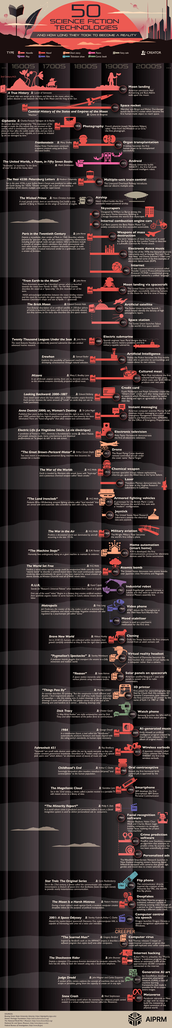 Many of the technologies that we use today would sound like science fiction to people from centuries ago. Writers have been exploring the potential of technology since antiquity but it has taken us a long time to get to space travel and AI. This infographic from AIPRM covers 50 science fiction technologies and how long they took to become reality: