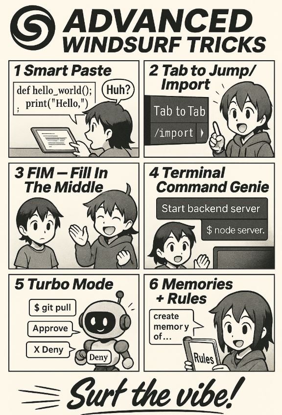 Windsurf is one of the most exciting vibe coding platforms around. With SWE-1, you now have a model that has Claude 3.5 Sonnet levels of tool-call reasoning. It is optimized for software engineering and outperforms all non-frontier models and open-weight alternatives. It is also cheaper to serve. Not sure where to start? This infographic from Rad Neurons covers 6 Windsurf tricks: