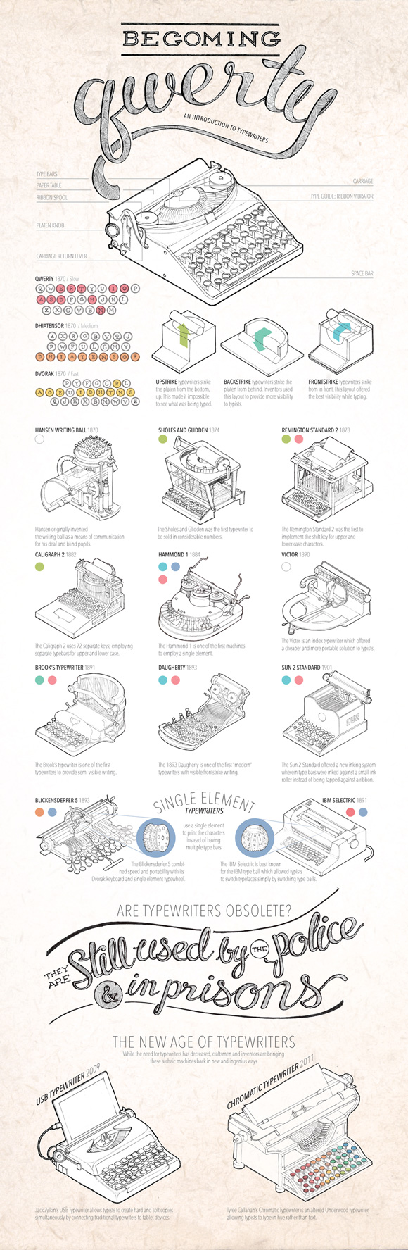 Many of us own fast, fancy keyboards these days. Not too long ago, people relied on typewriters to get their writing done. This infographic takes a look at a history of typewriters: