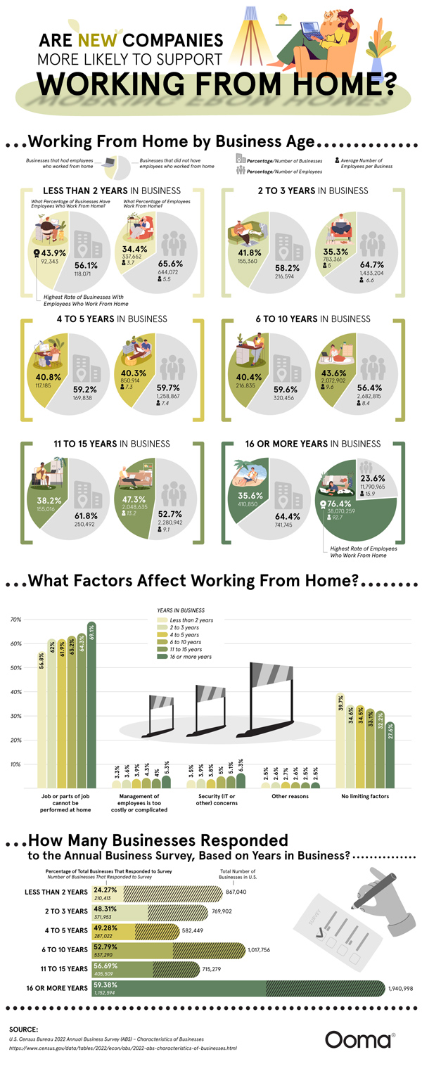 Working from home has many benefits, especially for those who have a growing family. After COVID, lots of companies have been open to the idea. This infographic from Ooma takes a look at how old and young businesses view the idea of working from home: