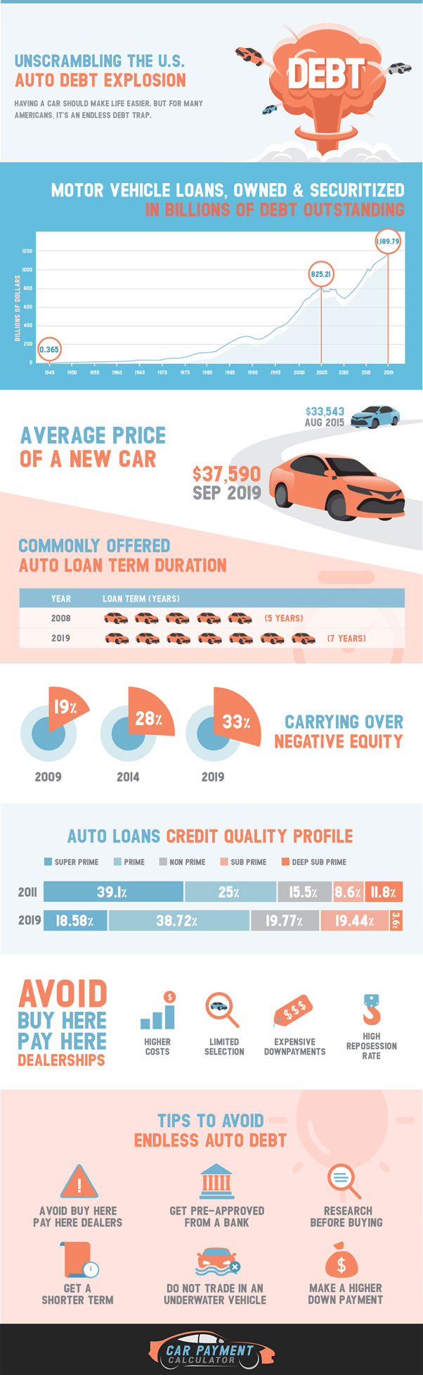 Most of us have taken loans to own a car in the past. As vehicles grow more expensive, consumers are ending up taking on more debt and struggle to keep up with the payments. This infographic from Car Payment Calculator takes a look at the explosion of auto debt in the U.S.: