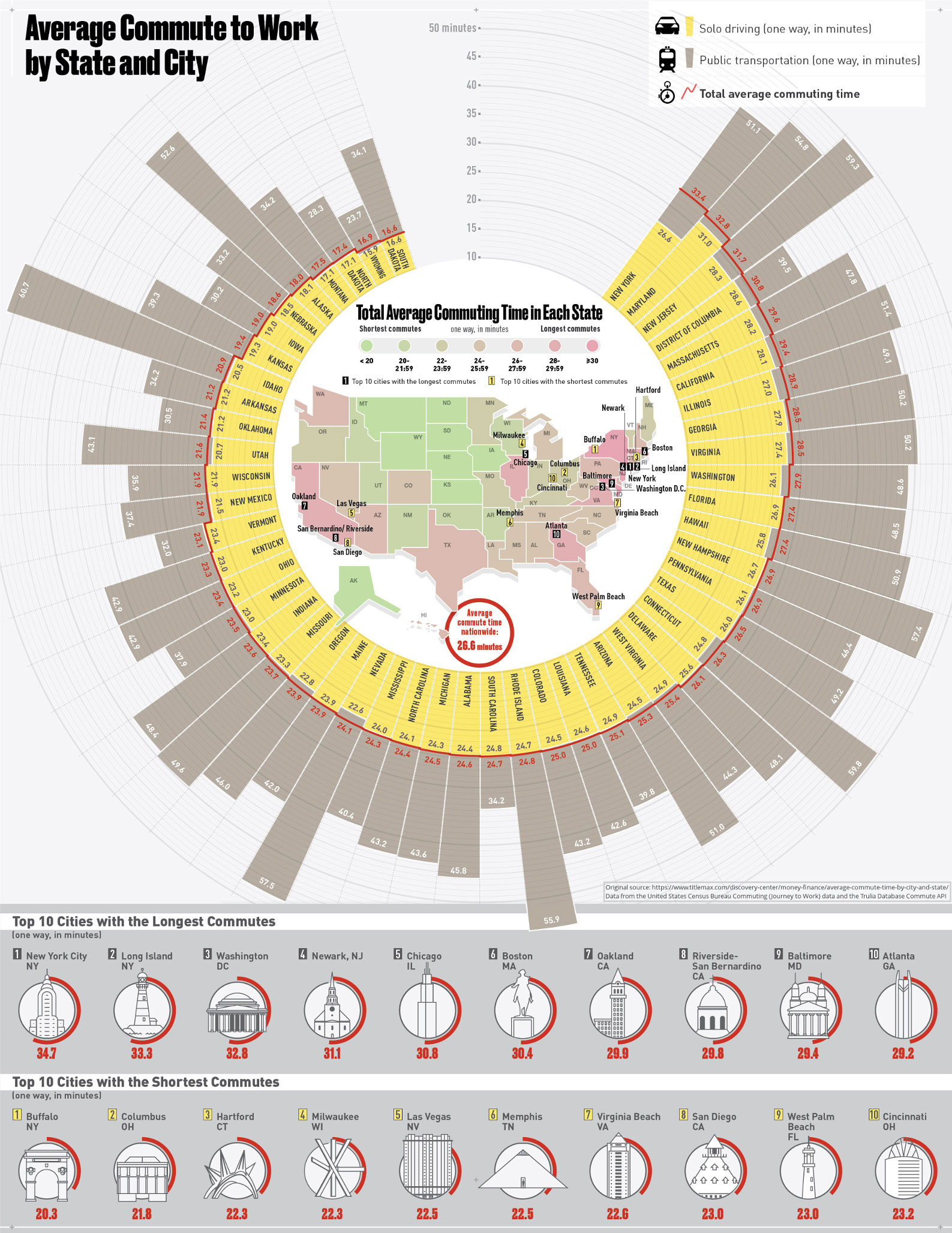 Average Commute To Work by City & State