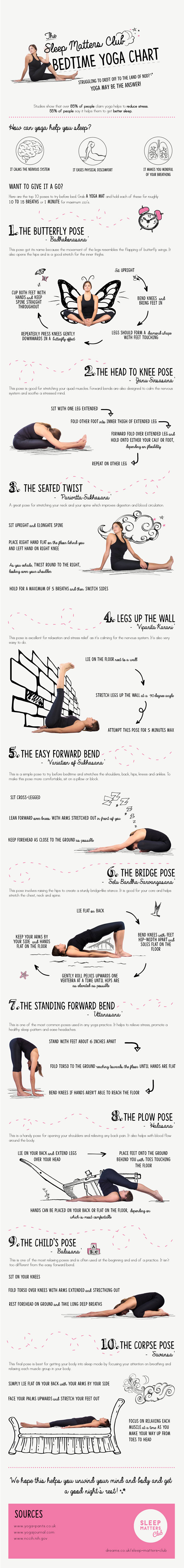 Practicing yoga before sleep can have a positive affect on your sleeping pattern. This infographic from Sleep Matters Club takes a look simple poses you can try to improve your sleep: