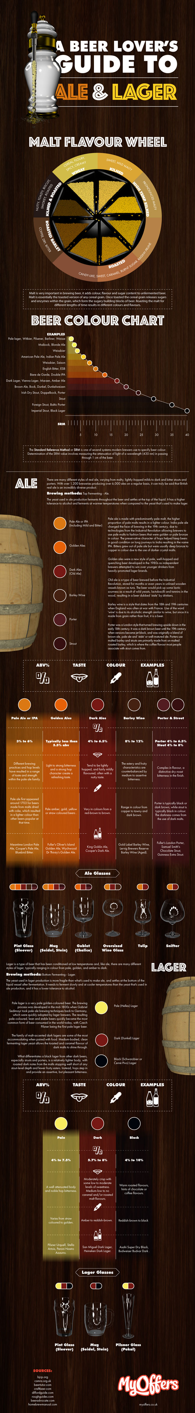 There are plenty of interesting beers available around the world. By experimenting on different brands, you are going to discover flavors that work the best for you. This infographic from MyOffers serves as a guide to ale and lager: