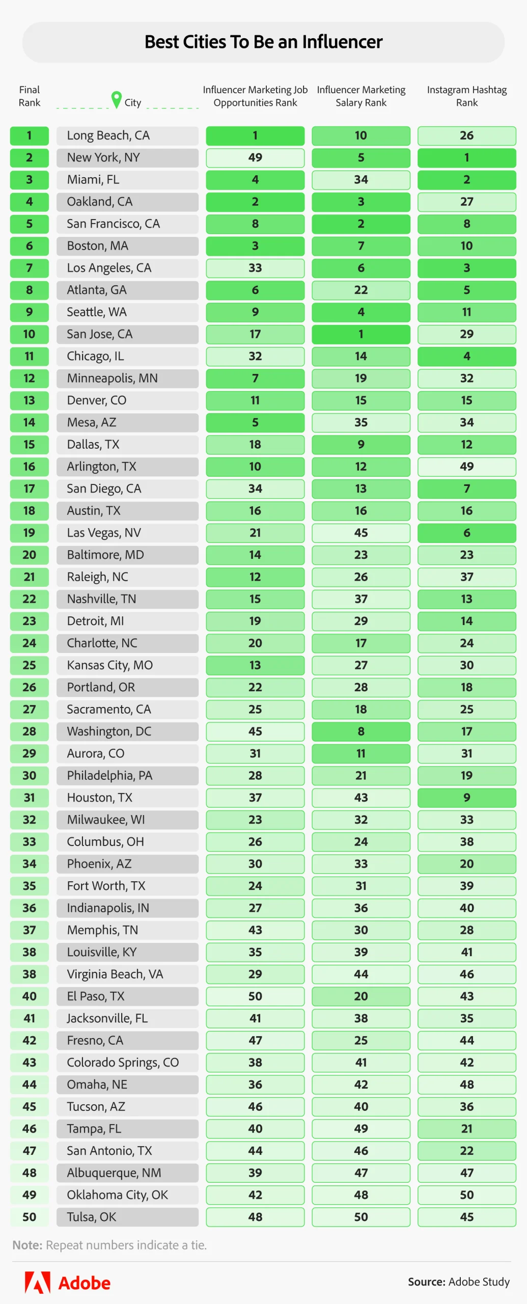 Becoming a successful influencer has become a dream job for a lot of kids. Where you live can contribute to your success in this field. This infographic from Adobe covers the best cities to be an influencer:
