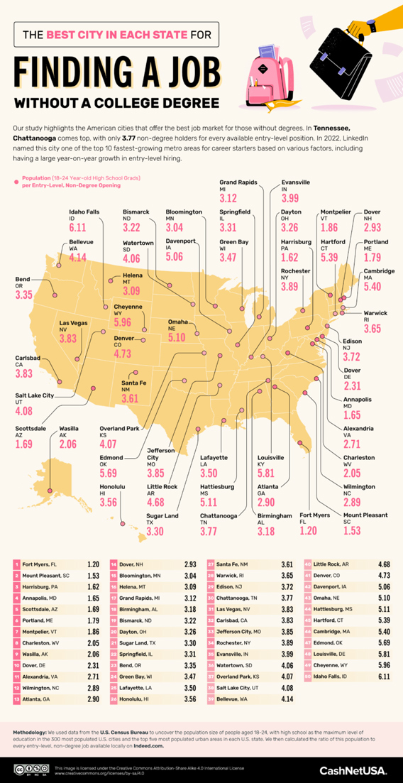 Best City To Find a Job without a College Degree [Infographic]