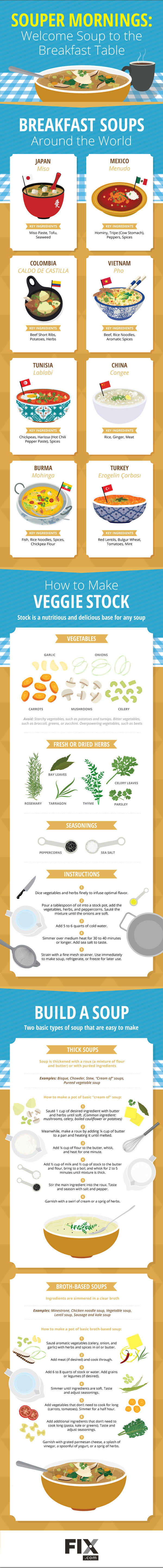 So you enjoy having soup for breakfast? It is actually quite common in certain countries around the world. This infographic from Fix.com takes a look at a few interesting breakfast recipes: