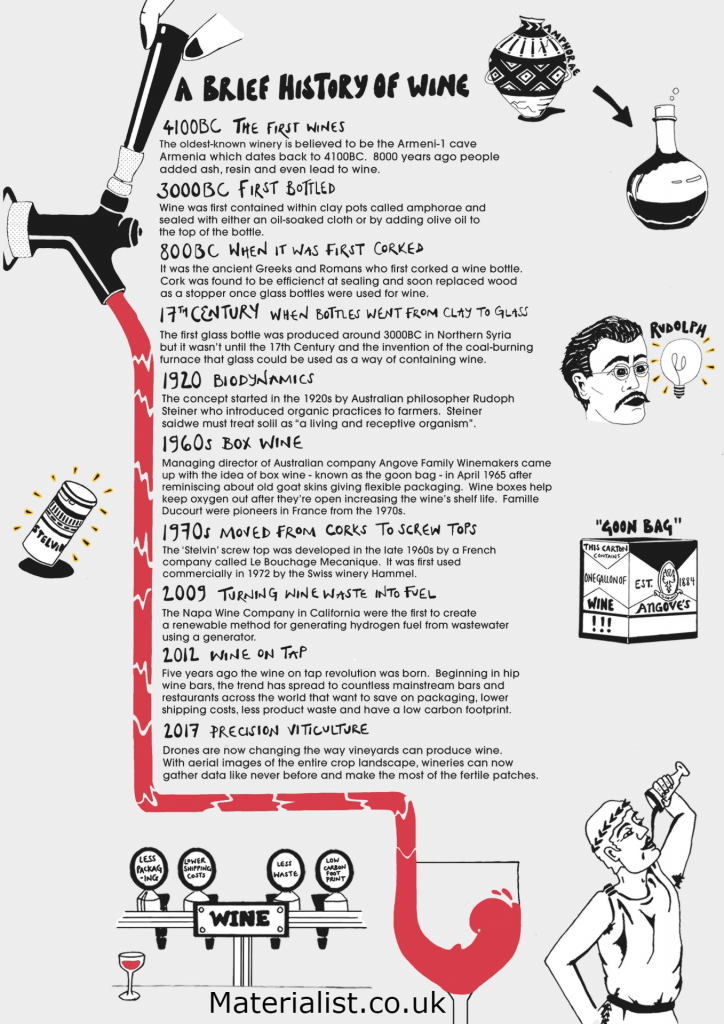 Everybody loves drinking wine once in a while. It has been a popular drink around the globe for centuries. Spain, Italy, France, Chile, and the United States are the world’s leading wine-producing countries currently. This infographic from Materialist visualizes the history of wine: