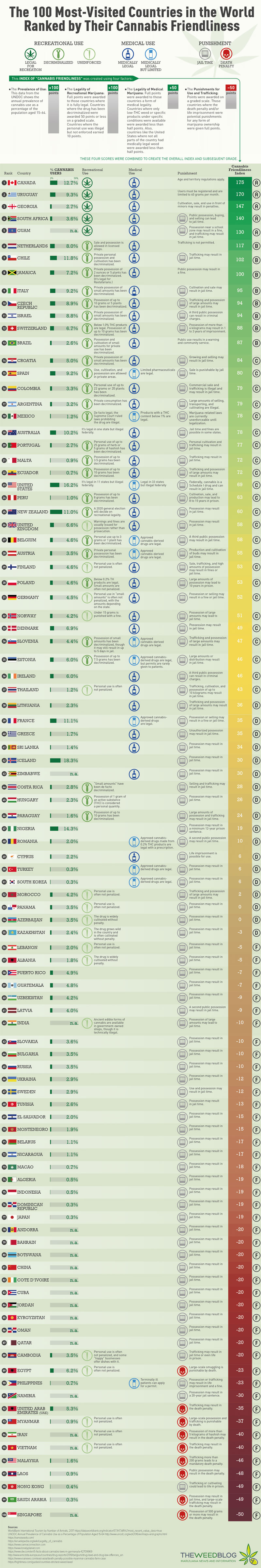 100 Most Visited Countries Ranked by Cannabis Friendliness