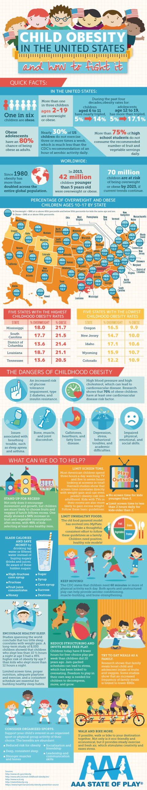 Obesity is the cause of early death for many folks. Child obesity is especially harmful as it could lead to all kinds of major health issues down the road. This infographic form AAA State of Play takes a look at the issue of child obesity in the United States: