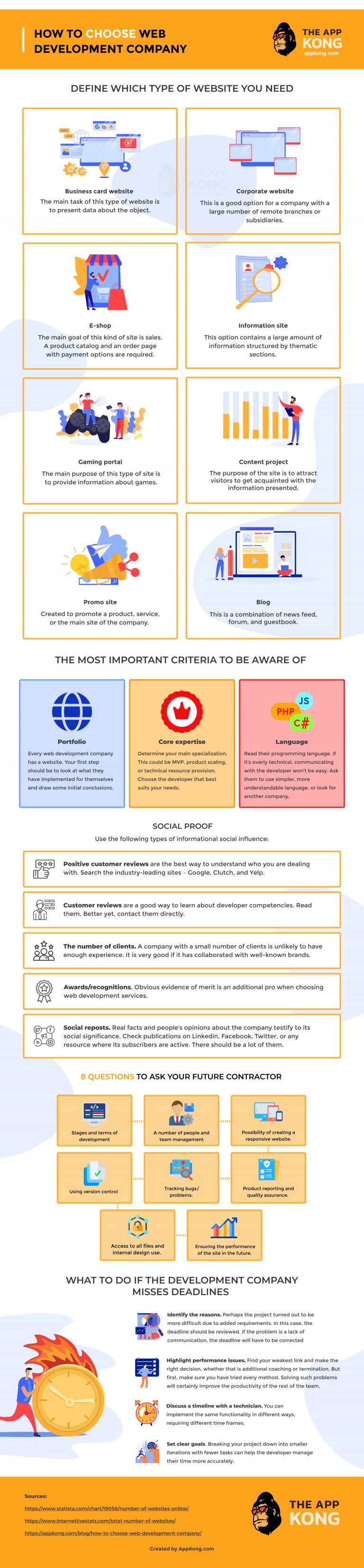 In this day and age, you need to have a professional online presence to impress your target audience. There are plenty of web development companies that can build you a website. Before choosing one, you need to determine the type of site you need and do your homework to choose the company that can deliver the best results. This infographic from the App Kong serves as a guide to choosing a web development company: