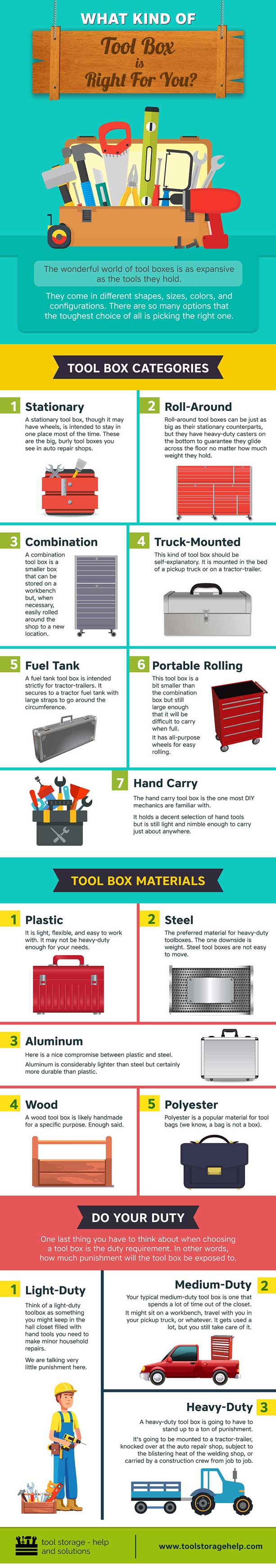 Everybody knows that you need the right tools to take on job at home or work. Picking a toolbox that gives you easy access to your tools and protects them is a wise idea. This infographic from ToolStorageHelp helps you decide which toolbox is right for you: