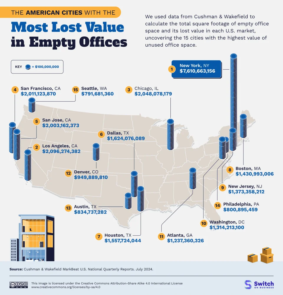 Cities with the Most Lost Value in Empty Offices [Infographic]