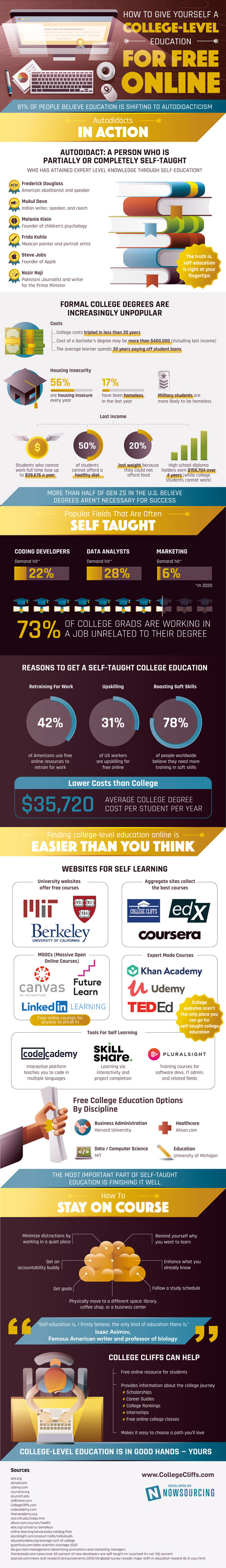 It is no secret that college is quite expensive. You don’t need to spend a fortune to get a college-level education online though. This infographic from CollegeCliffs has more info on that: