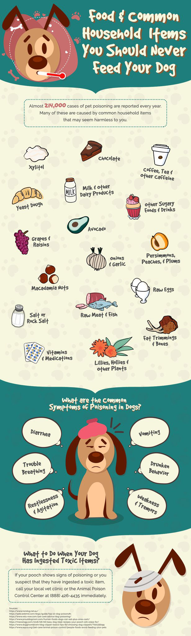We all love our dogs but did you know that common household items could lead to food poisoning of your pet? Pawstruck has put together an infographic that shows what foods and household items can make your dog sick: