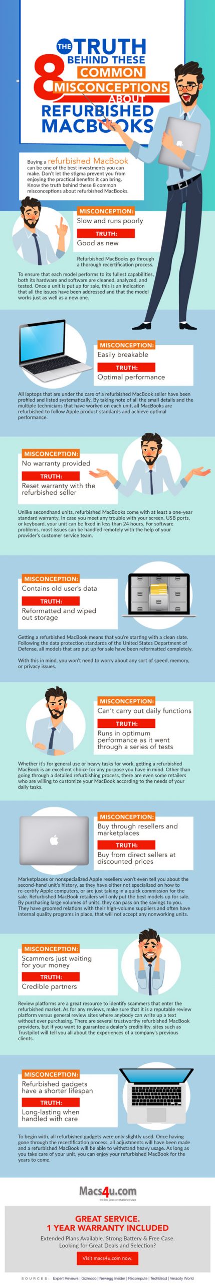 Everybody knows that MacBooks are quite pricey. You can always save money by investing in refurbished ones. This infographic from Macs4U addresses a few common misconceptions about refurbished MacBooks:
