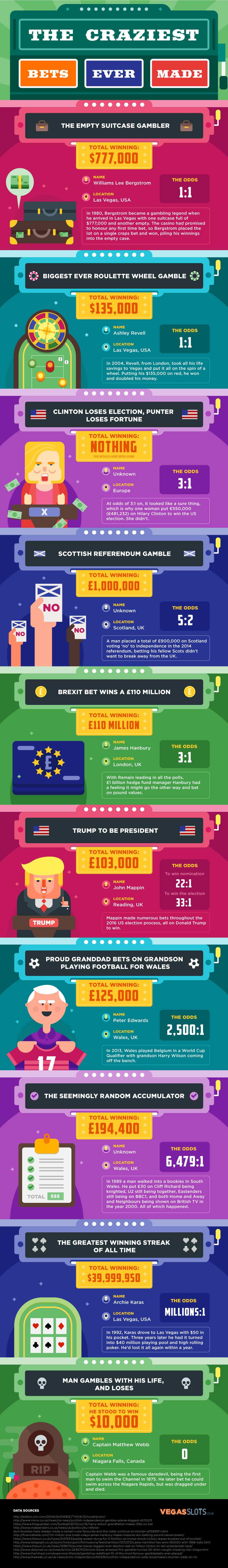 It is no secret that not everyone makes sane bets. Many people have lost a fortune betting on things. This infographic from Vegas Slots covers some of the craziest bets ever made: