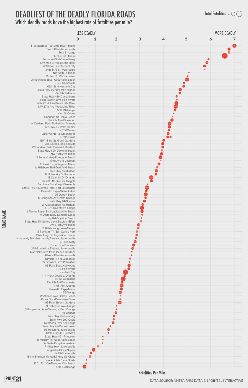Every state has its own dangerous roads on which the most number of accidents and fatalities occur. Stein Law Miami has published a study that takes a look at the deadliest roads in Florida: