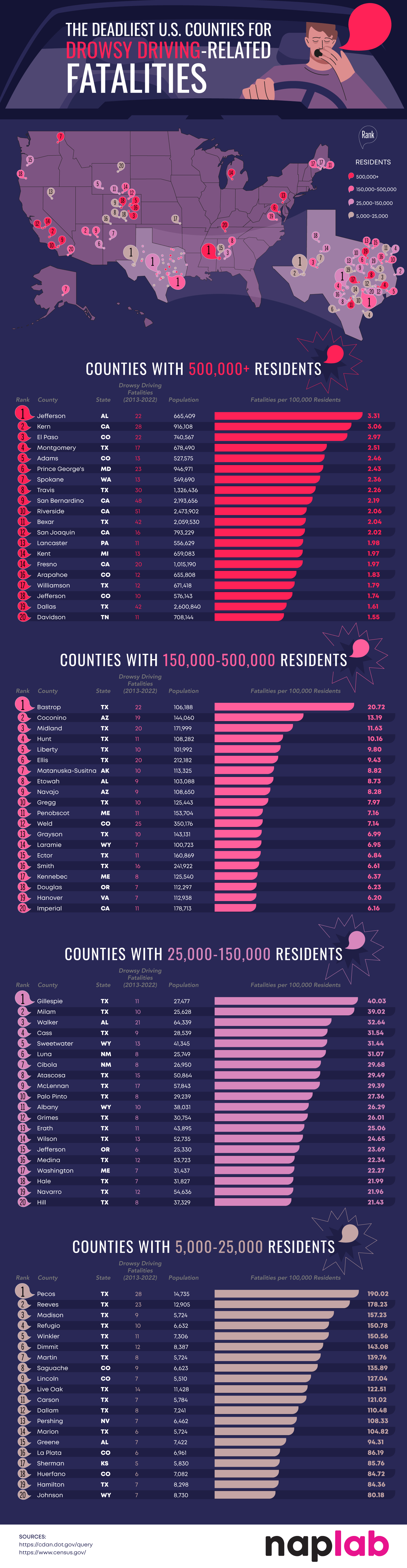 Deadliest U.S. Counties for Drowsy Driving-Related Fatalities [Infographic]