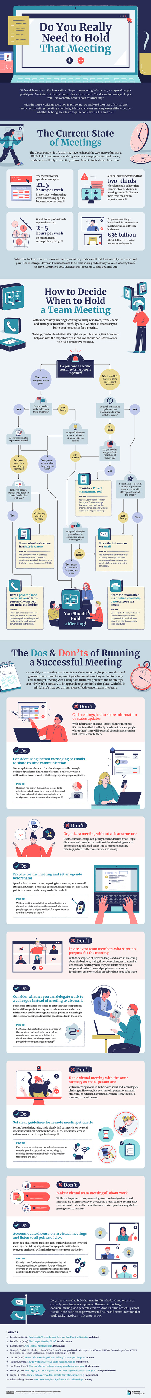 Those of you who have worked in the corporate world in the past know that employees have to put up with a lot of meetings that are just a waste of time. Did you know that the average worker spends 21.5 hours per week in meetings? This infographic from Business Financing helps you decide which meetings to hold:
