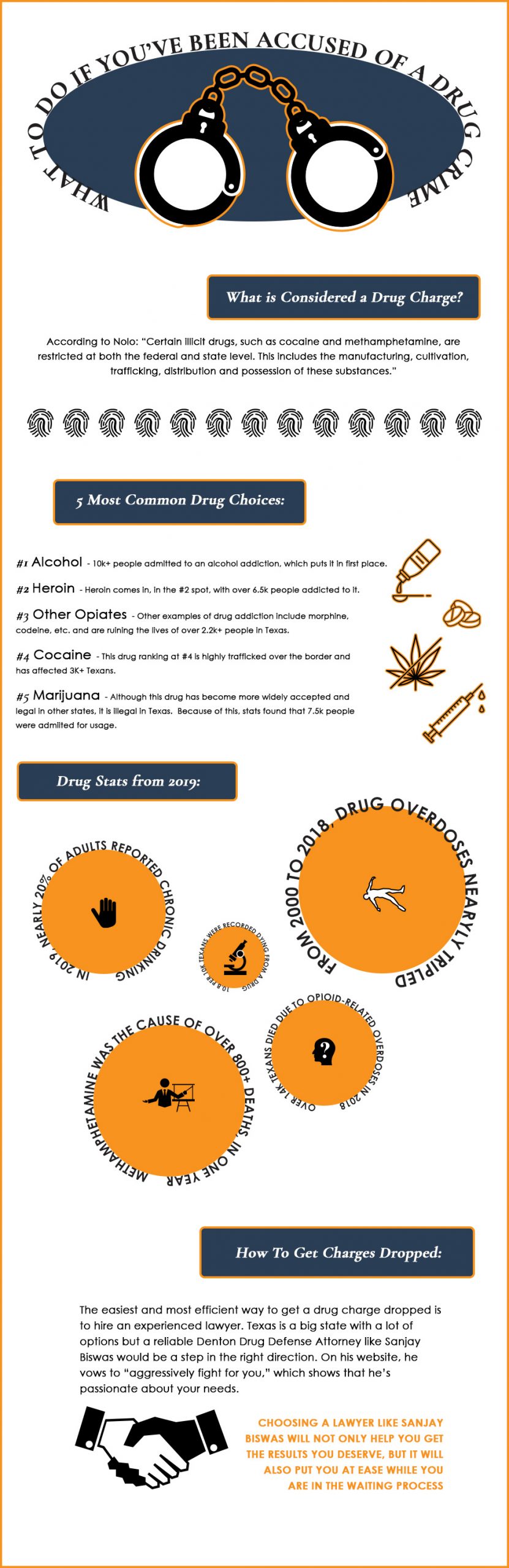 Manufacturing, distributing, and possession of certain substances can lead to drug charges in the United States. Alcohol, Methamphetamine, and other substance abuses remain a serious issue in this country. This infographic from dentonlawtx.com has some interesting facts and stats on drug crimes: