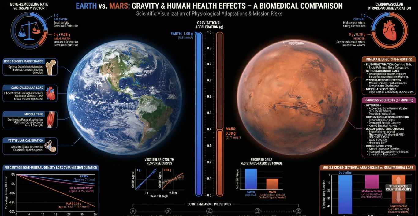 Spending time in low gravity conditions is not good for your body. You will have to take measures to avoid muscle and bone atrophy. This infographic covers the effects of low gravity on the human body: