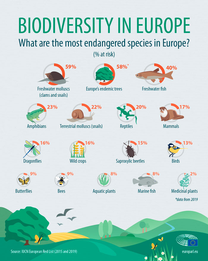 We hear about endangered species around the world all the time due to pollution, invasive species, and other environmental challenges. This infographic from European Parliament takes a look at facts and stats on endangered species in Europe: