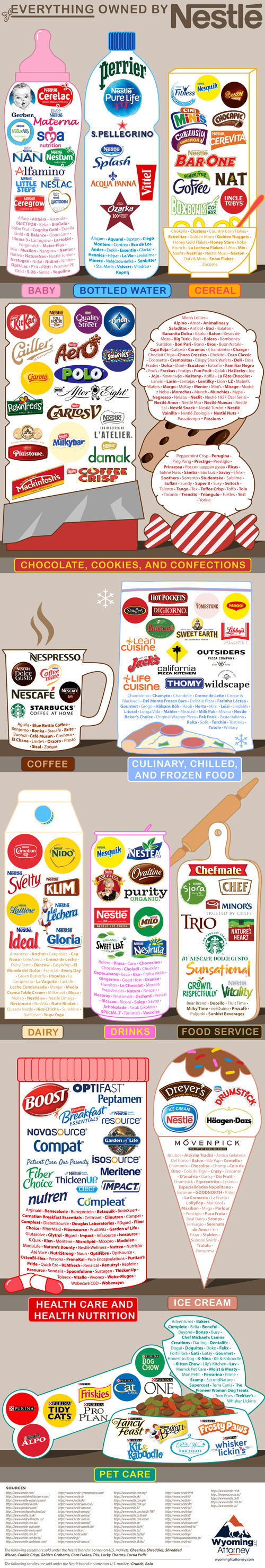 Nestlé S.A. is a Swiss multinational food and drink processing conglomerate corporation behind products that many of us use on a daily basis, including baby products, pet care, and even bottled water. This infographic from Wyoming LLC Attorney covers everything owned by Nestle: