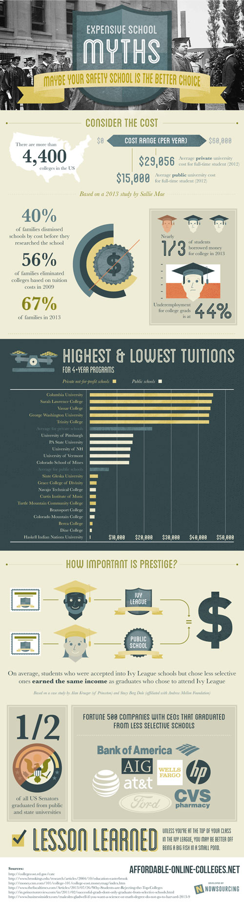 Plenty of people assume that if they get a degree from an Ivy League school, they will automatically become a success. While prestige is important, it is not everything. This infographic from Affordable Online Colleges takes a look at a few myths associated with expensive schools: