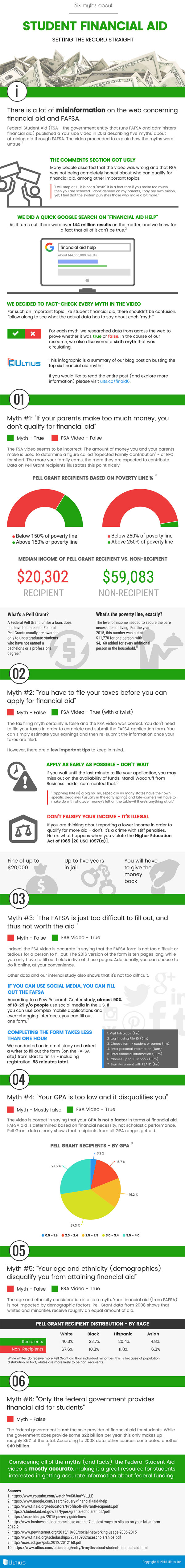 You don’t have to be super rich to pay for college. While private loans are an option, many students qualify for federal financial aid if they look hard enough. This infographic from Ultius takes a look at 6 myths about federal student financial aid: