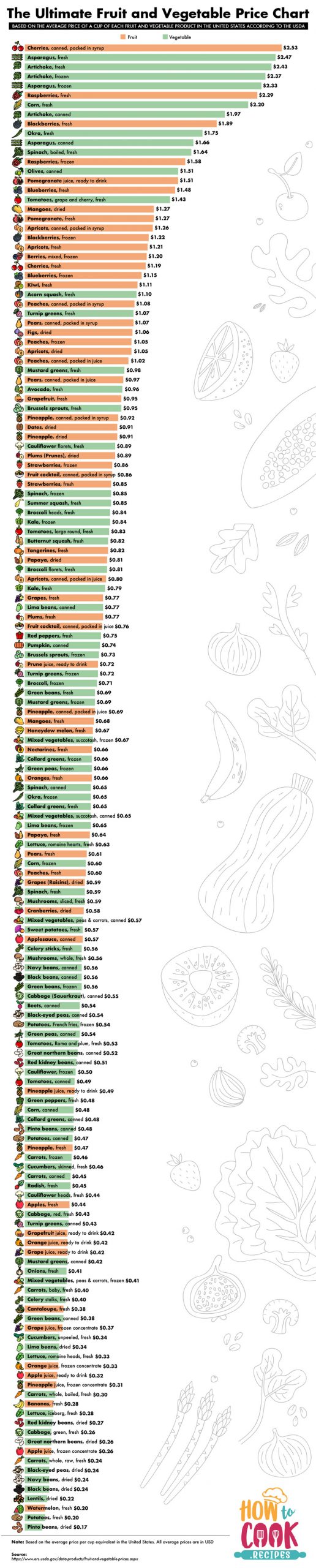 Adding vegetables and fruits to your diet can help you get your health back on track. You don’t have to spend a fortune to do it either. This infographic from How to Cook.Recipes gives you an idea how much various vegetables and fruits cost: