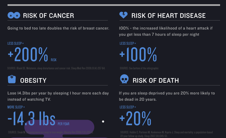 - if you are sleep deprived, you are 20% more likely to die in 20 years