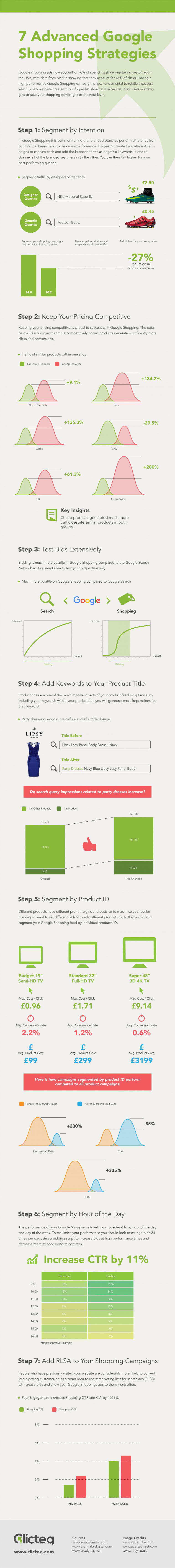 Plenty of businesses rely on Google shopping ads to reach a new audience. You will need to plan properly and optimize your campaigns to get better results. This infographic from Clicteq takes a look at 7 advanced Google shopping strategies you should know: