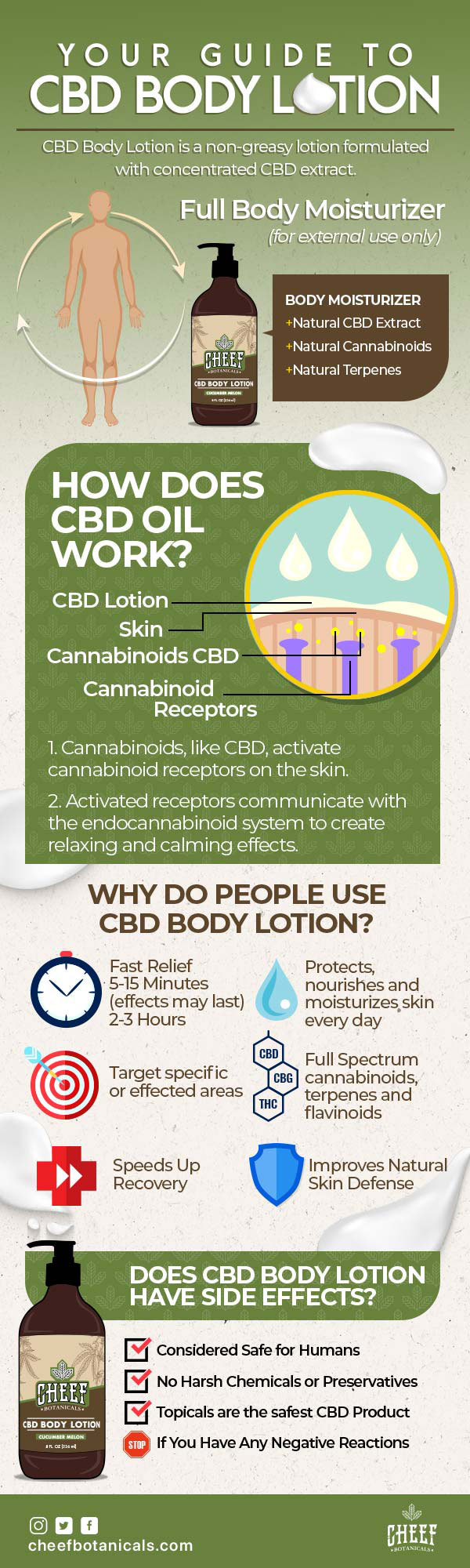 CBD products are known for pain relief and healing properties. With a CBD body lotion, you can protect and moisturize your skin, get quick relief, and recover faster. This infographic from Cheef Botanicals serves as a guide to CBD body lotions:
