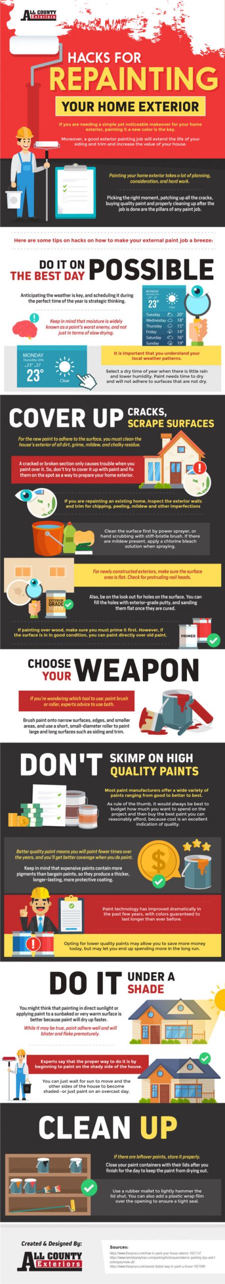 So you would like to give your home a makeover? Painting its exterior is one way to do so. This infographic from All County Exteriors has a few hacks on repainting your home exterior: