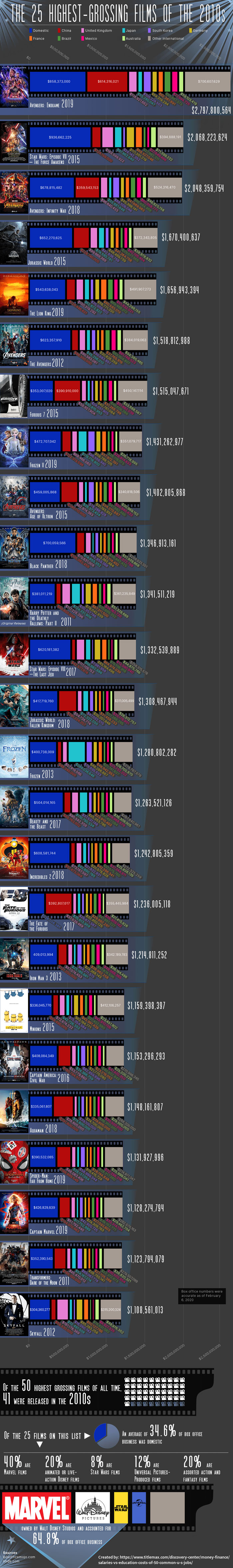 In the last decade, we saw plenty of movies from the Marvel universe. Who can also forget about Harry Potter and Star Wars movies. Have you wondered which movies dominated the box office in the 2010s? This infographic from TitleMax takes a look: