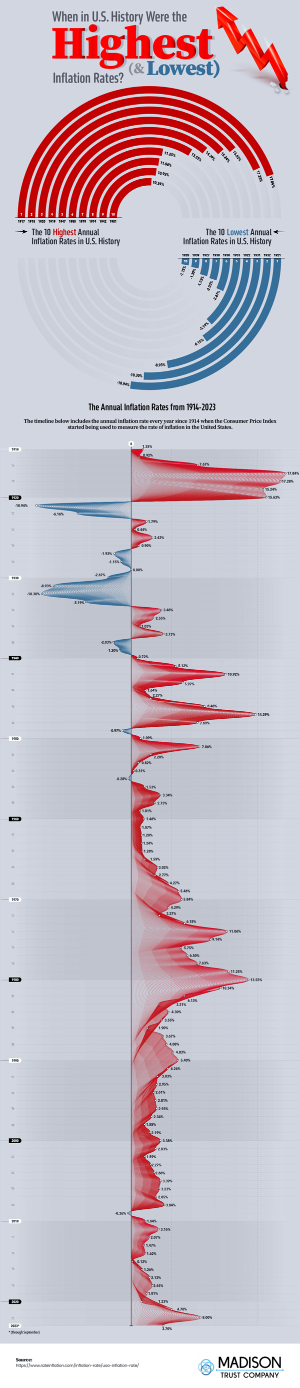 We have all heard about inflationary and deflationary periods in US history. Have you ever wondered when the US had the highest inflation rates? This infographic from Madison Trust Company takes a look: