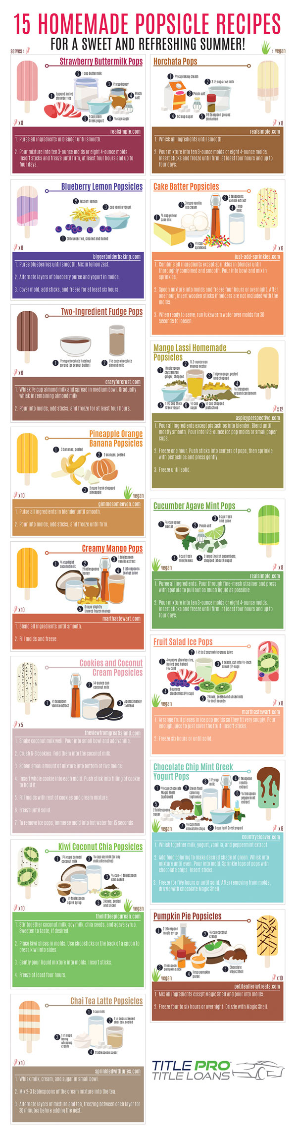 Popsicles are fun to have on hot summer days. You don’t have to buy them though. Here are 15 homemade popsicle recipes from Title Pro you should check out: