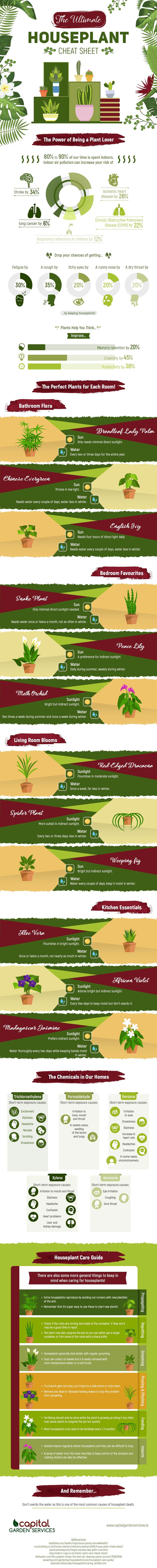 Many of us love to have more plants around. They not only make your home look cooler but can clean the air. This infographic from Capital Garden Services serves as a cheat sheet to houseplants: