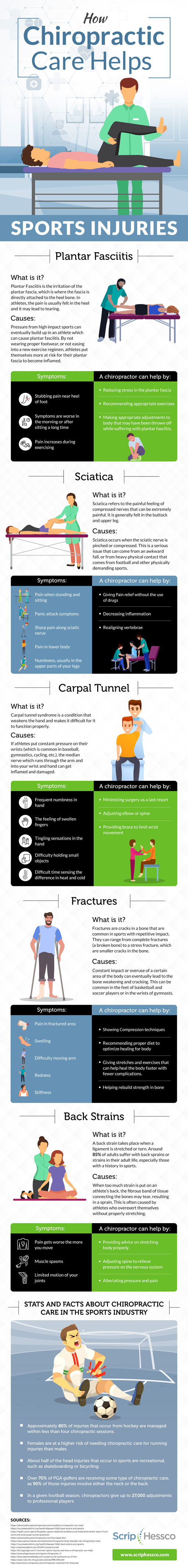 Playing sports seriously can take its toll on the body. Plenty of athletes rely on chiropractors to help them recover from sports injuries. This infographic from Scrip takes a look at how chiropractors can help with sports injuries: