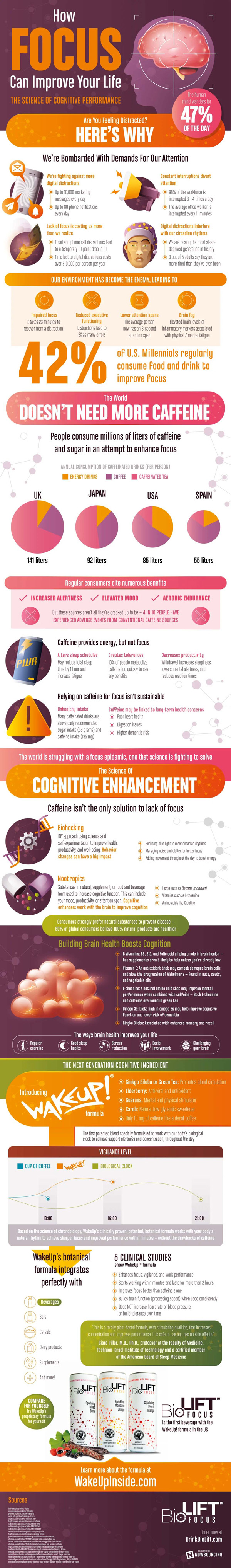 Plenty of us would love to stay more focused on important things in life. Distractions can only make you unproductive. Plenty of people drink coffee thinking it will bring them focus when it mainly brings more energy. This infographic from BioLift takes a look at how focus drinks can save you from distractions: