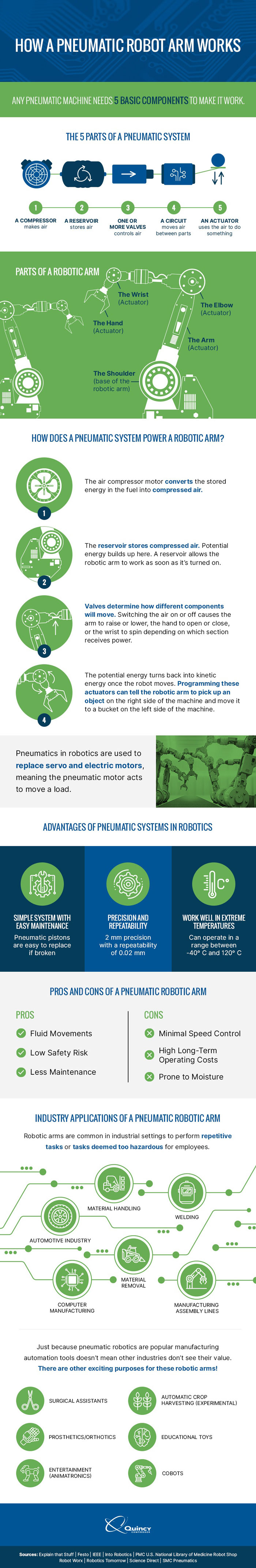 Robots are everywhere and will play an even bigger role in our lives. You are always going to have an easier time programming robots when you understand how they actually work. Quincy Compressor has put together an infographic that shows how pneumatic robot arms work: