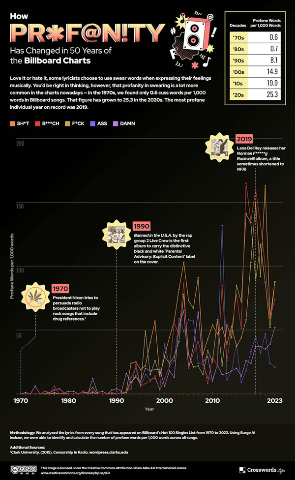 How Profanity Has Changed in 50 Years of Billboard Charts [infographic]