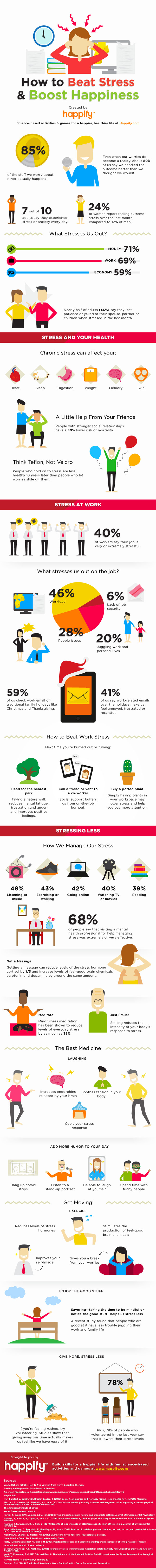 We all have to deal with stressful situations on a regular basis. You wouldn’t want stress to take away from your life quality and happiness. This infographic from Happify suggests ways you can beat stress: