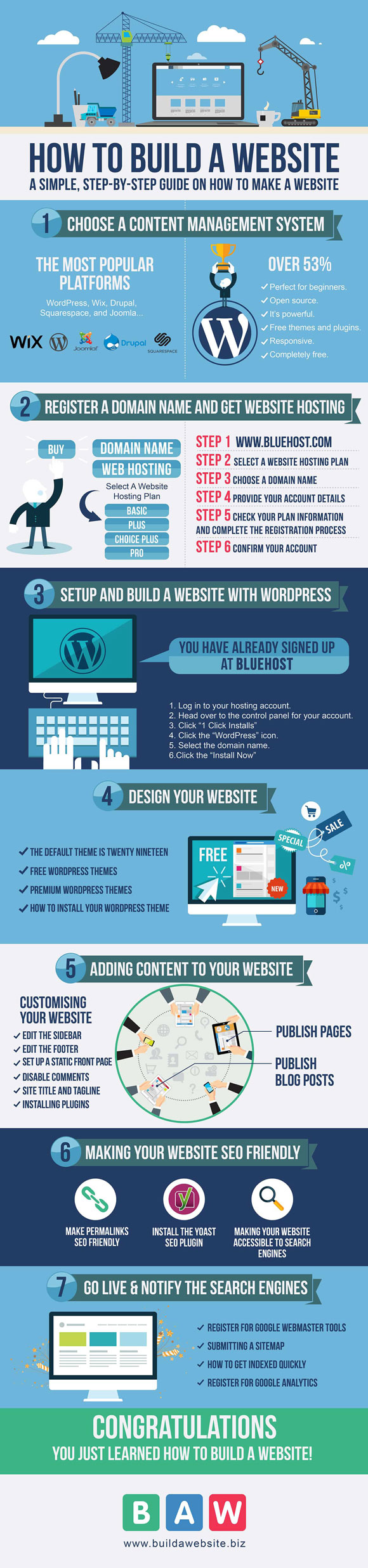 Building a website can sound quite daunting if you haven’t done it in the past. There are many platforms and services you can take advantage of to bring your site online faster. This infographic from Build a Website serves as a step by step guide for that: