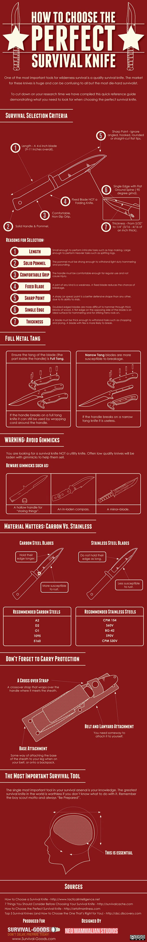 So you are planning to spend some serious time in the wilderness? You wouldn’t want to get stuck with no knife or other lifesaving tools. This infographic from Survival Goods helps you choose the perfect survival knife for your adventures: