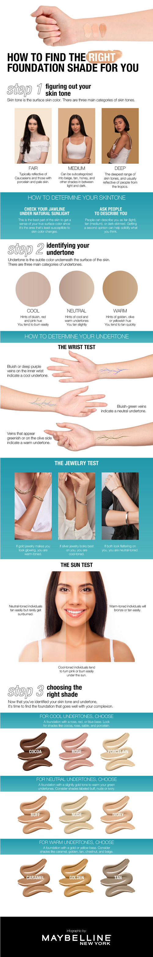 Every makeup artist knows the importance of getting the foundation right. You will need to match your foundation as closely as possible to your natural skin color for the best results. This infographic from Maybelline Philippines has a few tips on that: