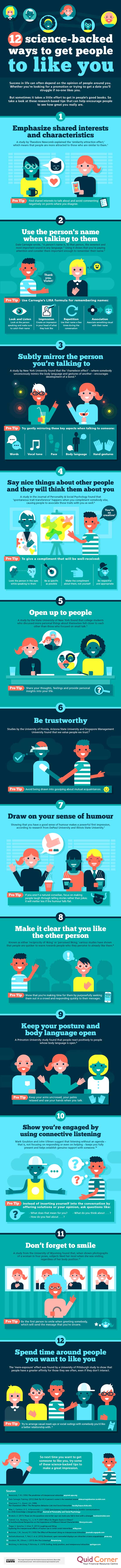 You are going to have an easier time having things go your way when you get people to like you. Being likeable isn’t just a natural talent, so there are ways you can make a better impression with friends and colleagues. This infographic from Quid Corner covers ways you can get people to like you better: